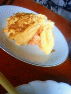 とき卵に塩コショウ牛乳を加えてスクランブル的な卵を作ってケチャライスの上へのっけます